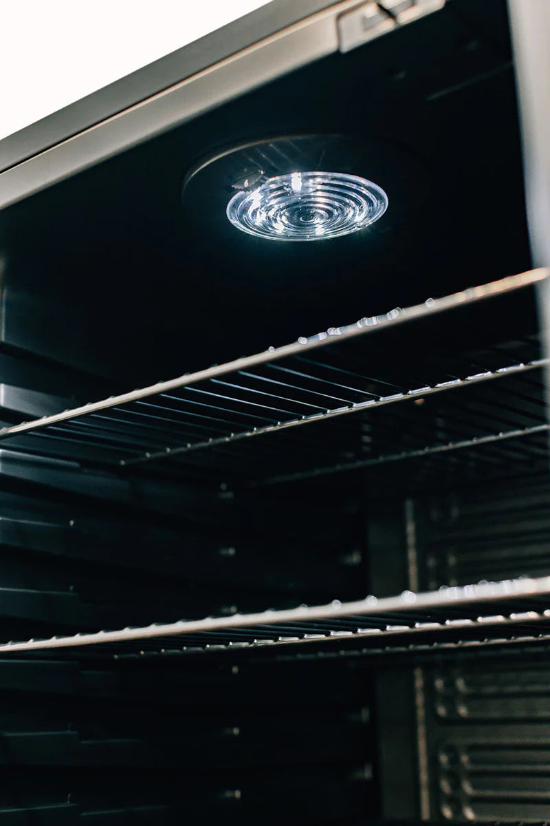 The 22" Compact Refrigerator Series offers 4.1 cubic feet of storage, #304 stainless steel doors, and automatic interior lighting. Build them into an island or use them inside—these refrigerators will add a whole new level of convenience to your setup. Has reversible door with lock.